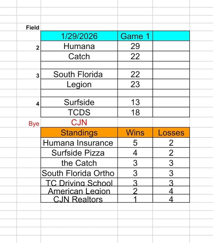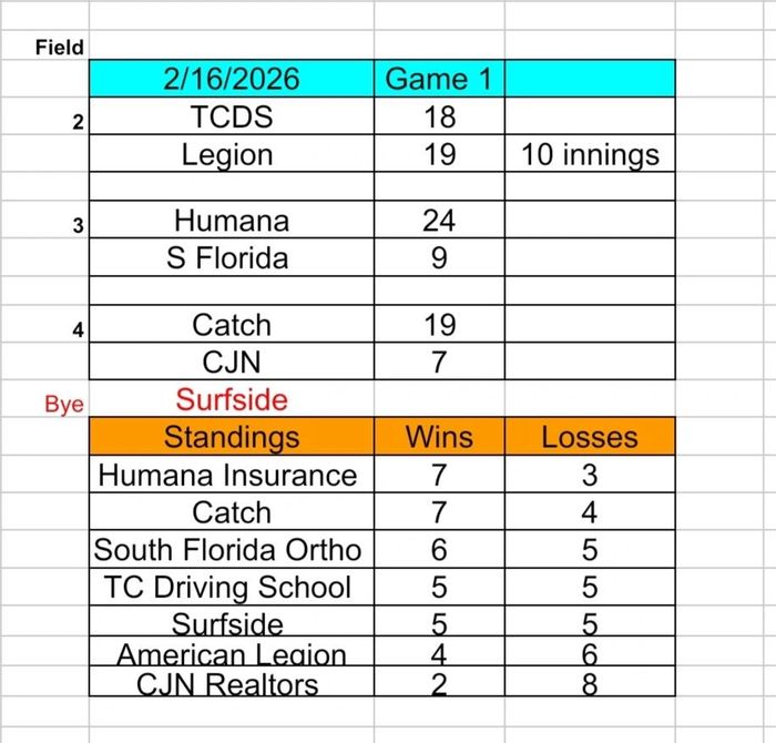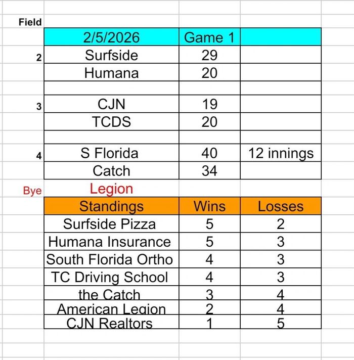 League play begins each January and runs through March. Each team is scheduled to play 20 regular season/9 inning games.